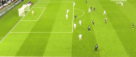 第48分鐘,劉易斯傳球,謝爾基準(zhǔn)備過(guò)人被破壞