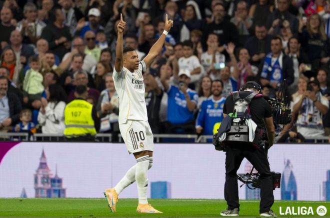 第31分鐘,皇馬打出精彩配合,居萊爾下底傳中展現(xiàn)精妙腳法,皮球正好越過后衛(wèi),姆巴佩雜耍一般,將球打進(jìn)。