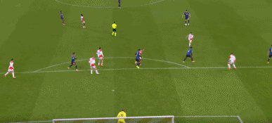 24’薩卡倚住后衛(wèi)小角度射門(mén)被撲。