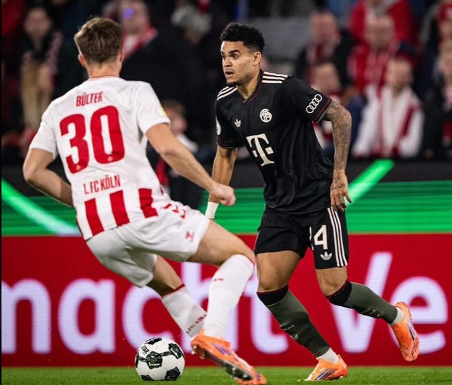 德國(guó)杯拜仁4-1科隆晉級(jí),凱恩雙響,迪亞斯傳射建功+失單刀 -